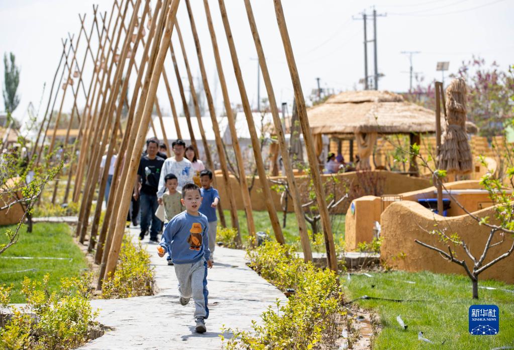 5月3日,游客在寧夏靈武市崇興鎮中渠村游玩。