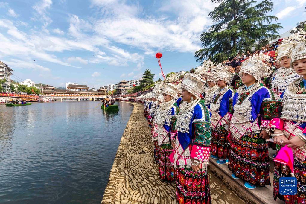 “五一”小長(cháng)假期間,貴州省黔東南苗族侗族自治州臺江縣迎來(lái)一年一度的苗族姊妹節。頗具特色的盛裝游演、民族歌舞表演、苗家長(cháng)桌宴、民族民間工藝品展示等系列活動(dòng)吸引眾多游客前來(lái)觀(guān)賞游玩。