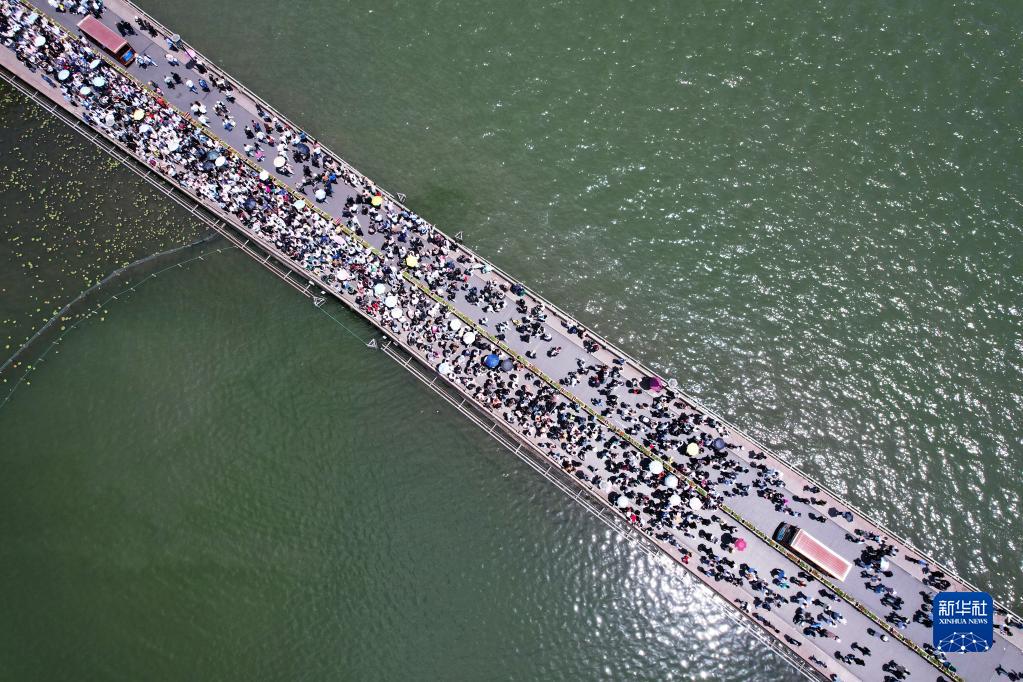 4月30日,杭州西湖斷橋上游人如織(無(wú)人機照片)。