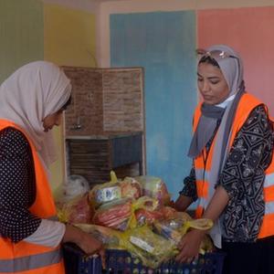 5月2日,在埃及南部阿斯旺省的一處汽車(chē)站,一名工作人員為逃離蘇丹進(jìn)入埃及的難民發(fā)放水。