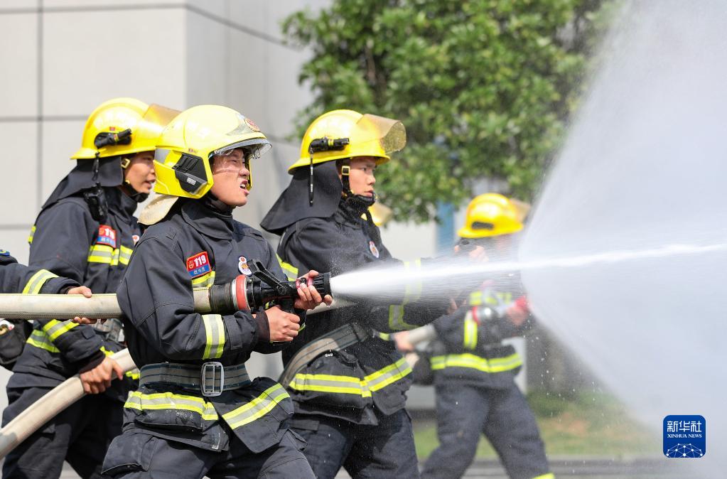 5月4日,貴州省銅仁市玉屏侗族自治縣消防救援大隊青年消防員在進(jìn)行訓練。