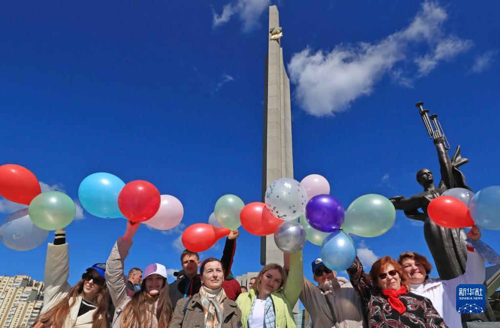 5月1日,人們在白俄羅斯明斯克英雄城市方尖碑前參加“五一”國際勞動(dòng)節慶?;顒?dòng)。