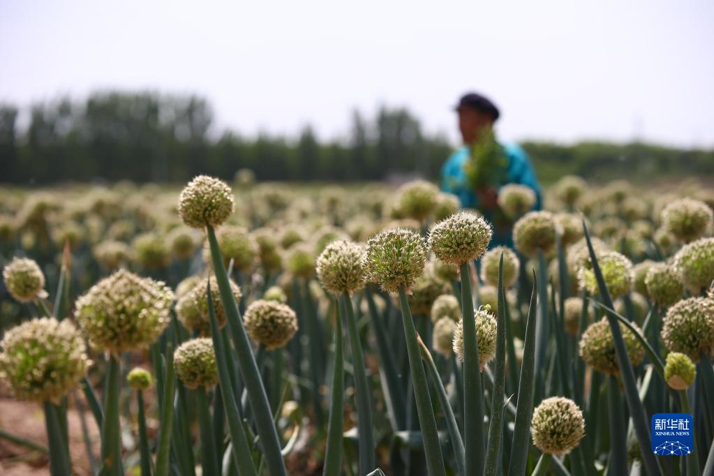 5月6日,山東省濟南市章丘區高官寨街道梨珩村村民在蔥田勞作。