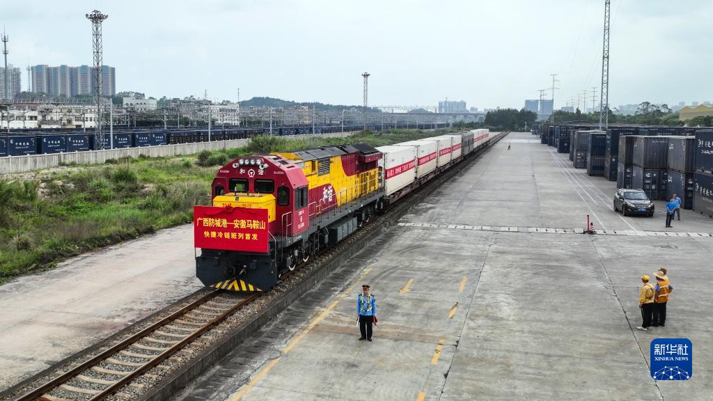 當日,首趟“防城港-馬鞍山”冷鏈班列搭載8個(gè)冷鏈集裝箱從廣西防城港站發(fā)車(chē),前往安徽馬鞍山站。這批貨物將經(jīng)馬鞍山市分撥至周邊的生鮮市場(chǎng),讓當地百姓可以品嘗到來(lái)自北部灣的海鮮產(chǎn)品。至此,廣西防城港開(kāi)行的冷鏈班列線(xiàn)路升至9條。
