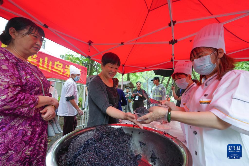 5月6日,游客在活動(dòng)現場(chǎng)品嘗烏米飯。
