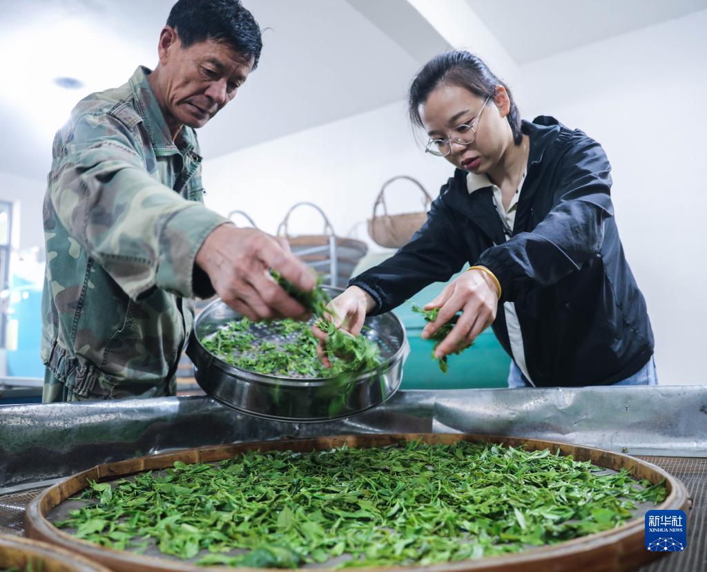 5月6日,湖州市長(cháng)興縣煤山鎮五通山村羅岕茶種植區的茶農將蒸青好的羅岕茶進(jìn)行攤涼。
