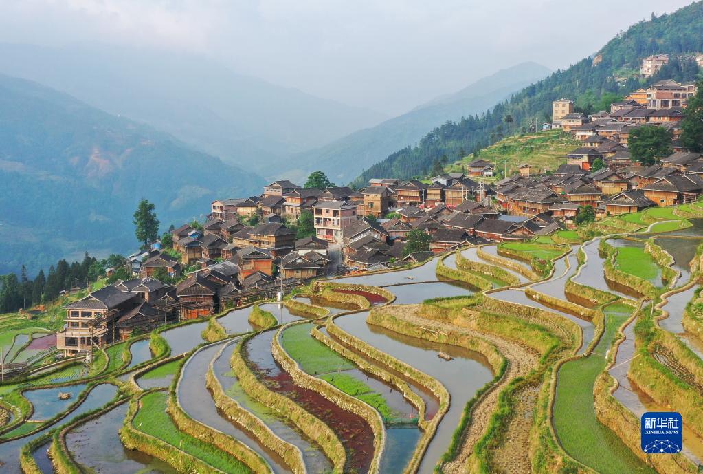 5月6日拍攝的貴州省從江縣加榜鄉加車(chē)村的梯田(無(wú)人機照片)。