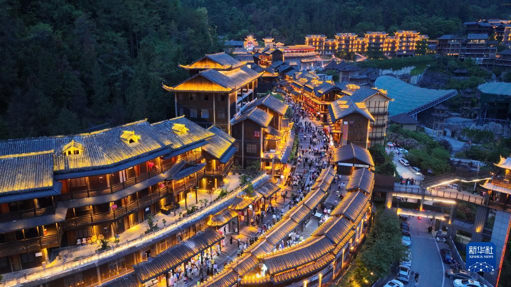 5月1日,游人在重慶市酉陽(yáng)土家族苗族自治縣酉州古城游玩(無(wú)人機照片)。