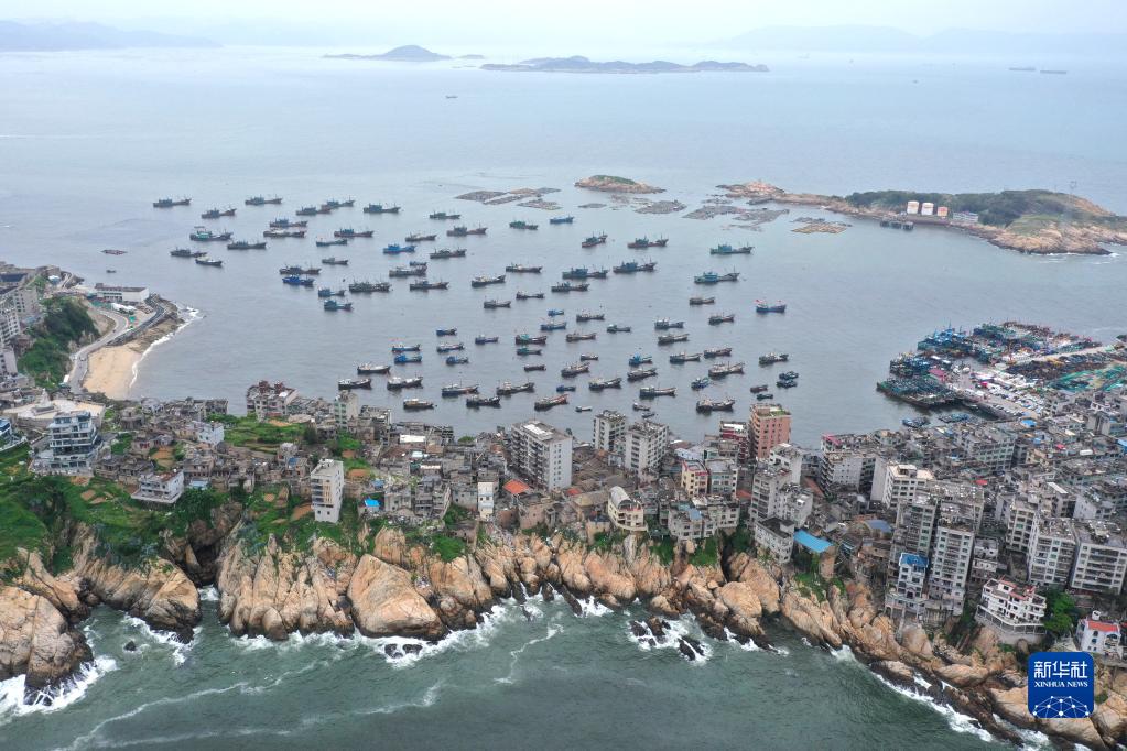 4月30日,準備休漁的漁船停泊在福建省福州市連江縣苔菉鎮北茭村漁港(無(wú)人機照片)。