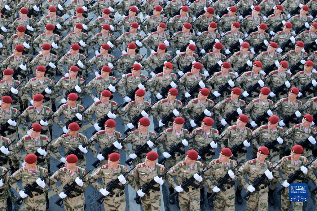 5月7日,在俄羅斯首都莫斯科,士兵列隊行進(jìn)。