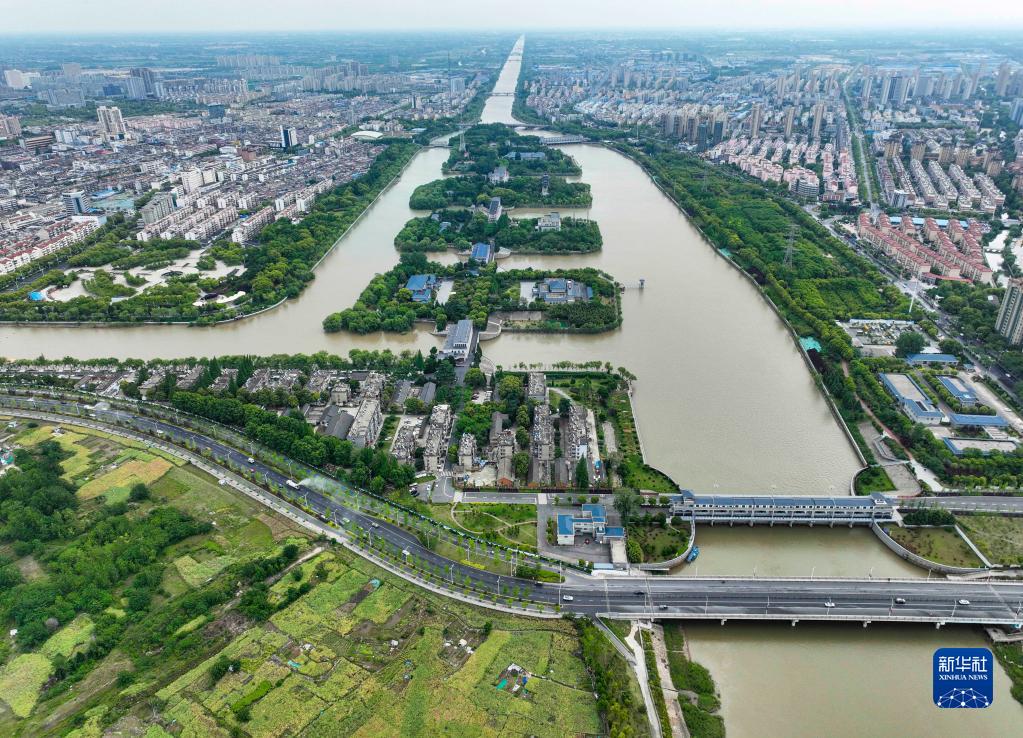 5月7日在江蘇省揚州市拍攝的江都水利樞紐(無(wú)人機照片)。