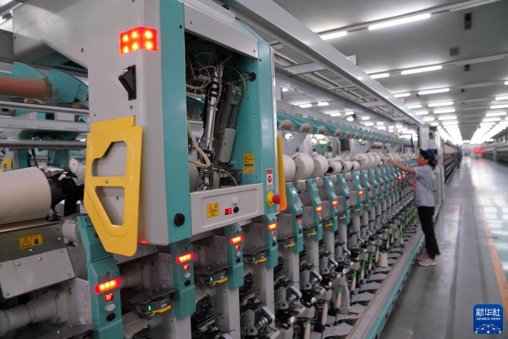 5月8日,在無(wú)錫一棉紡織集團長(cháng)江車(chē)間,自動(dòng)絡(luò )筒機在工作。