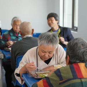 5月9日,老人在北京市平谷區西樊各莊村“養老驛站”就餐。