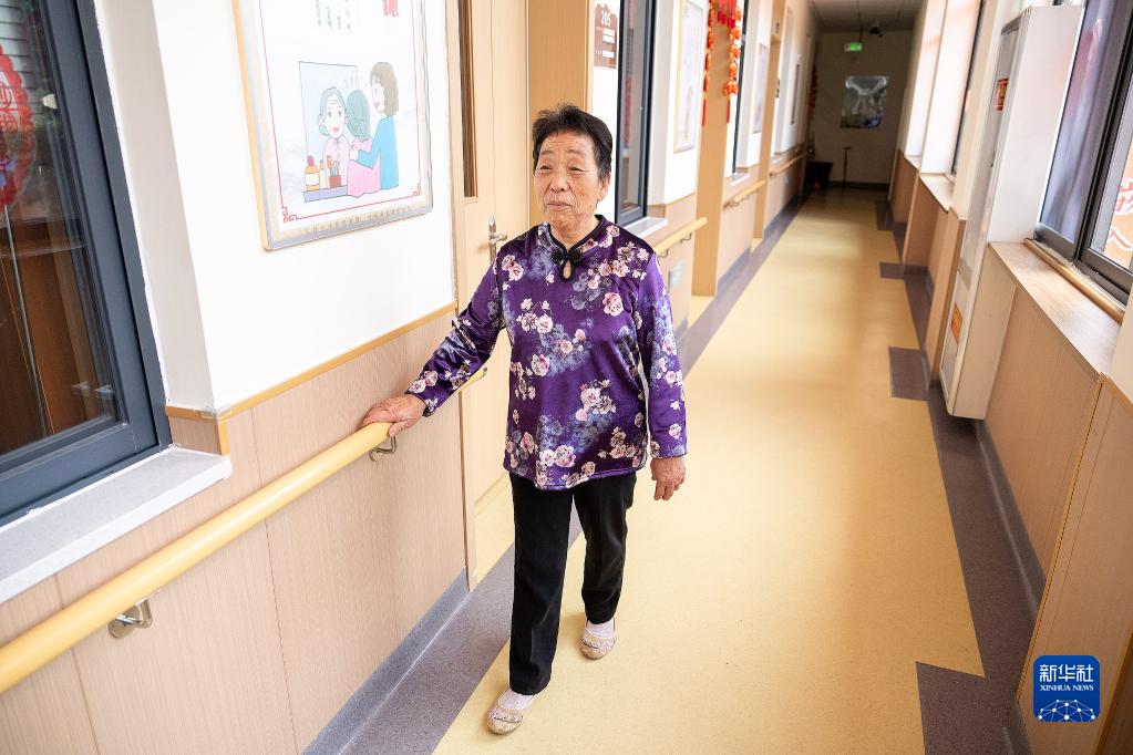 5月9日,在江西省南昌市青云譜區三家店街道南蓮社區嵌入式養老院,一位老人在走廊上散步。