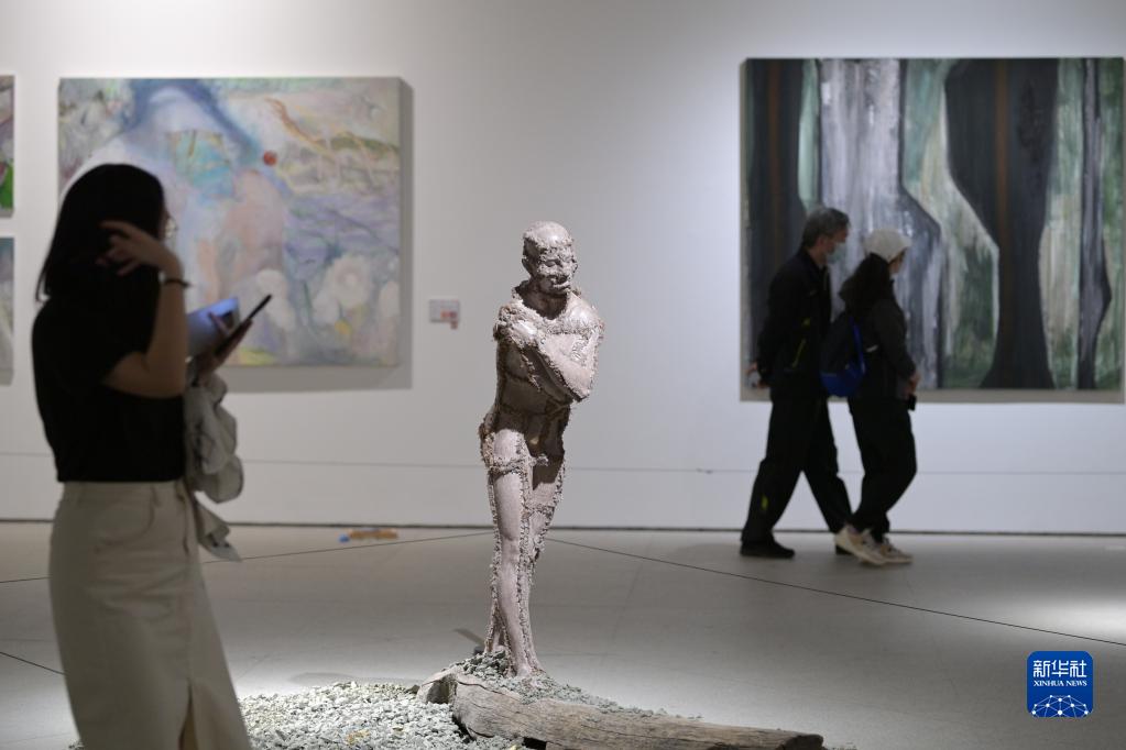 5月9日,觀(guān)眾在展覽現場(chǎng)觀(guān)賞雕塑作品。