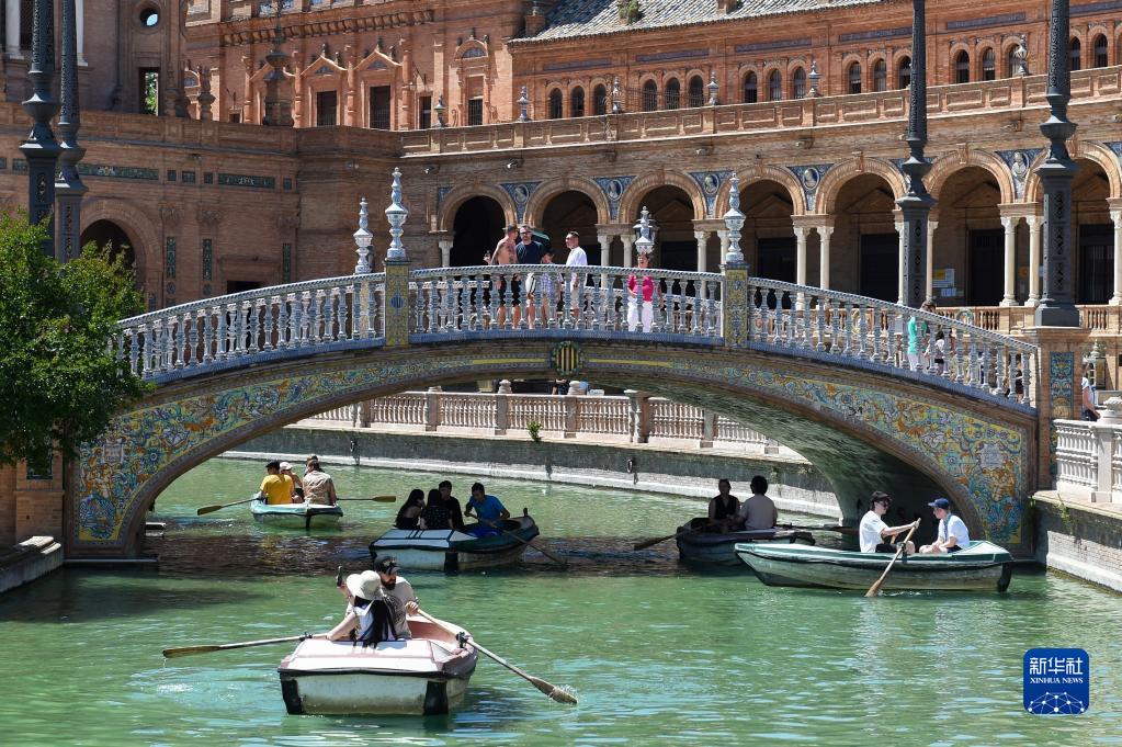 5月7日,游人在西班牙塞維利亞西班牙廣場(chǎng)游玩。