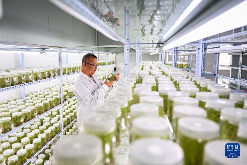 5月9日,武川縣塞豐馬鈴薯種業(yè)有限責任公司工作人員在觀(guān)察馬鈴薯脫毒苗生長(cháng)情況。