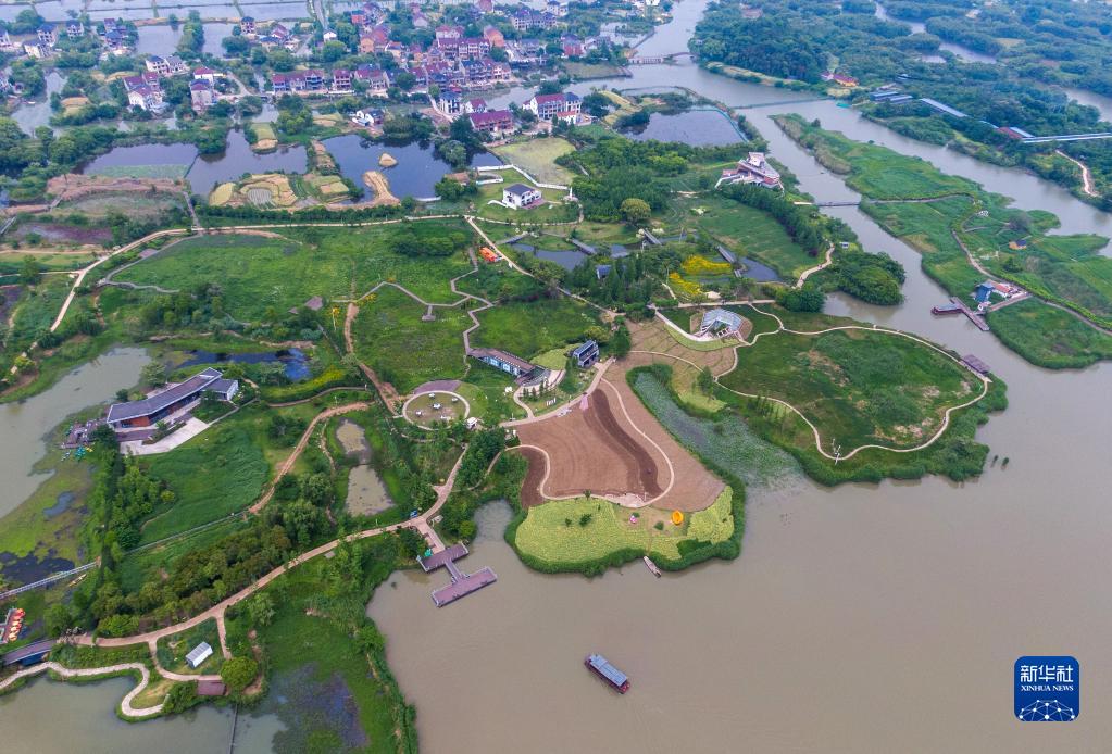 空中俯瞰位于德清縣的下渚湖國家濕地公園(5月8日攝,無(wú)人機照片)。下渚湖國家濕地公園面積約為36平方公里,是國家AAAA級景區、省級風(fēng)景名勝區、朱鹮易地保護暨浙江種群重建基地、國家野生大豆保護區、省級生態(tài)旅游示范區試點(diǎn)單位。