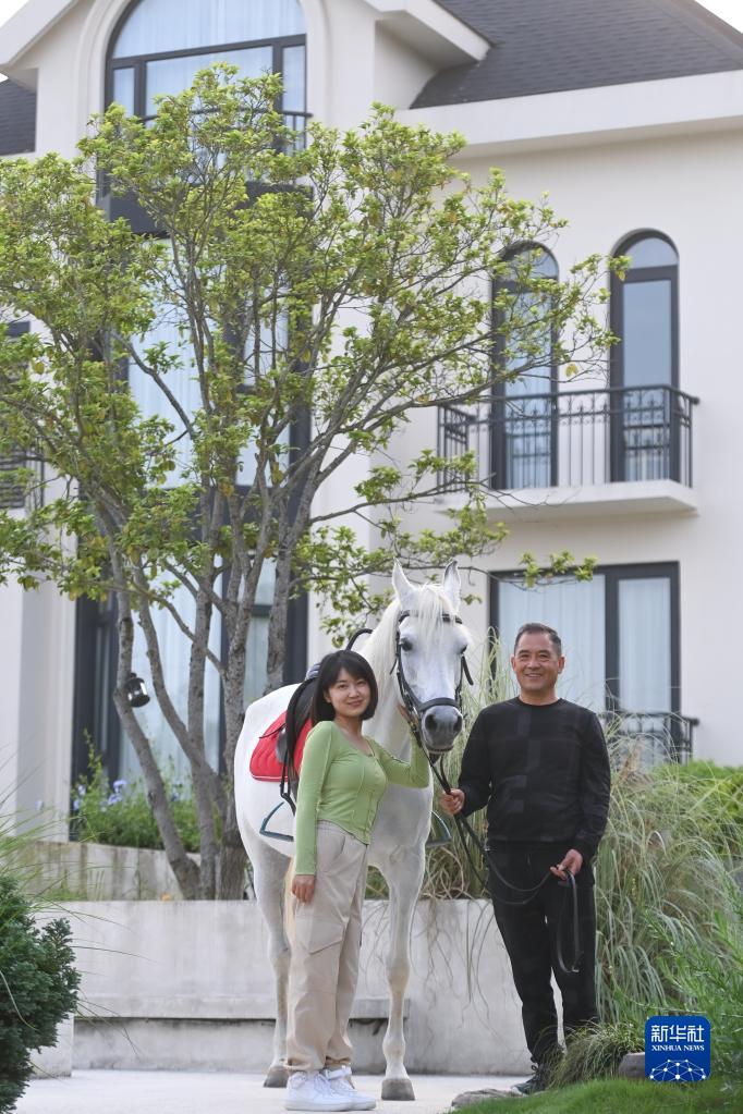 德清縣莫干山鎮高峰村的民宿主姚雪華(右)與女兒姚蓀芳在民宿前(5月8日攝)。畢業(yè)于中國美術(shù)學(xué)院設計專(zhuān)業(yè)的姚蓀芳在杭州工作多年后,回到家鄉,自己動(dòng)手設計,與父親將老宅改造成了主題民宿“彌宮”。