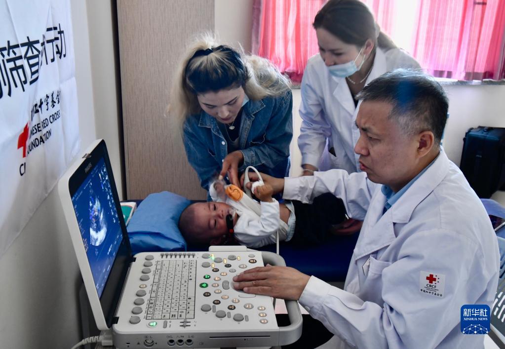 5月10日,無(wú)錫明慈心血管病醫院的心血管影像專(zhuān)家在為參加篩查的兒童進(jìn)行超聲波診斷。