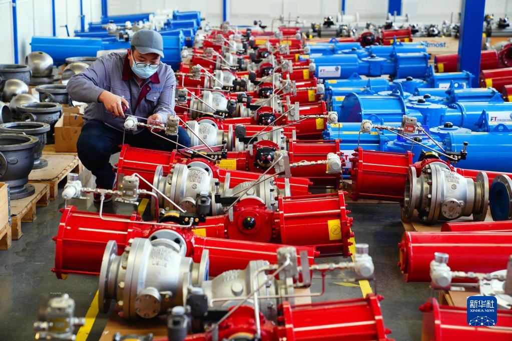 5月11日,在鄒城市艾坦姆流體控制技術(shù)(山東)有限公司,工人在質(zhì)檢高端流體閥。
