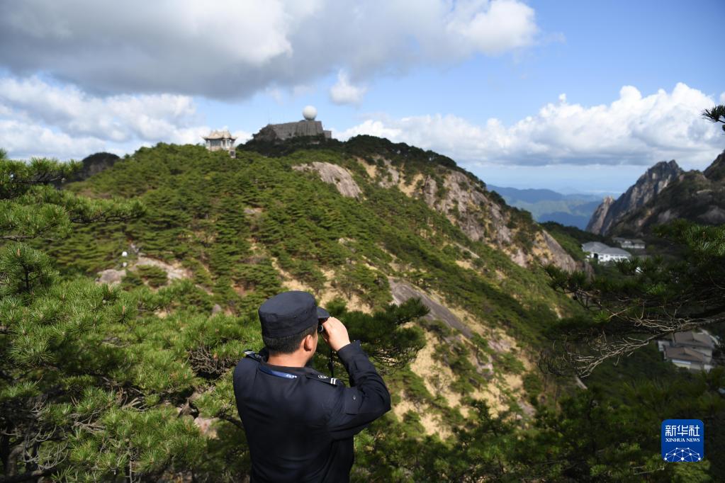 4月20日,秦志平在黃山風(fēng)景區觀(guān)測山林。