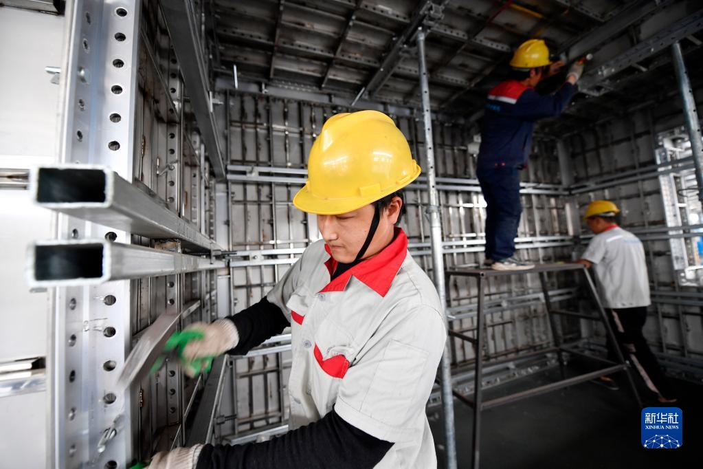 5月11日,工人在河北省文安縣左各莊鎮良禾木業(yè)有限公司生產(chǎn)車(chē)間對鋁合金建筑模具進(jìn)行預拼裝。