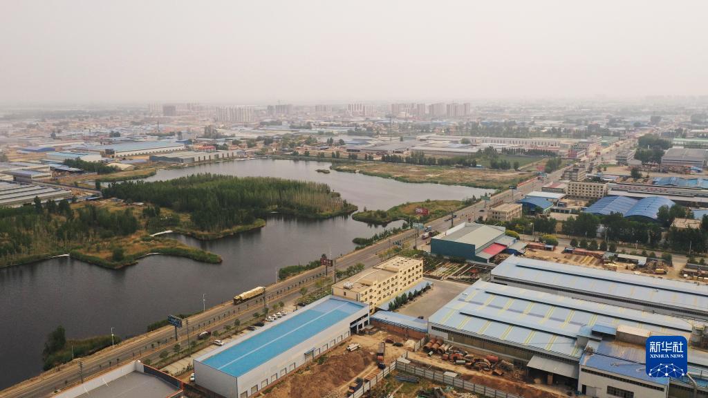 5月11日拍攝的河北省文安縣左各莊鎮人造板制造服務(wù)創(chuàng )新示范區一角(無(wú)人機照片)。