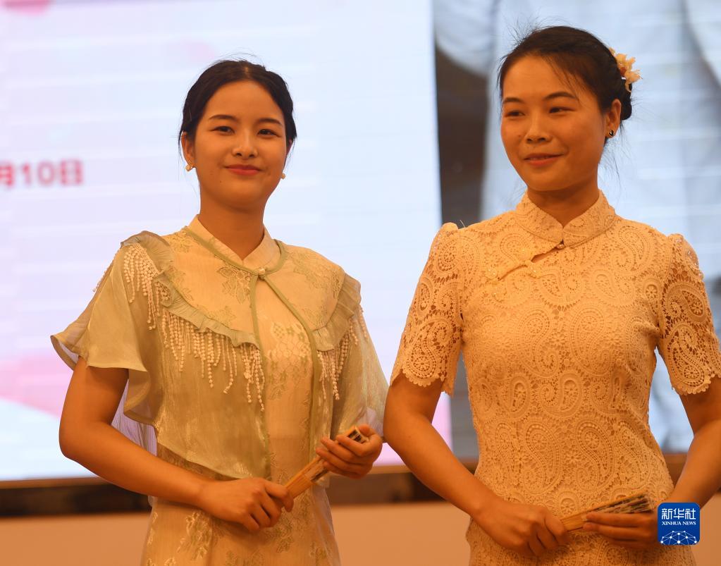 5月10日,在廣西南寧市第四人民醫院,黃小賢(左)在醫院慶祝護士節活動(dòng)中和同事表演中國風(fēng)服裝秀。