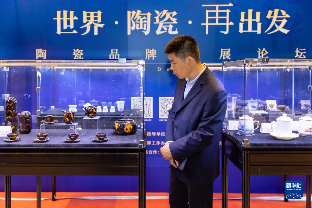 5月10日,參觀(guān)者在“世界·陶瓷·再出發(fā) 陶瓷品牌發(fā)展論壇”現場(chǎng)觀(guān)看展出的吉州窯。
