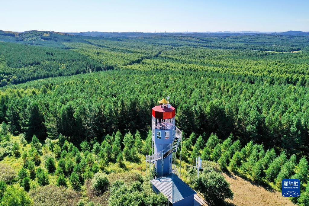 這是在河北塞罕壩機械林場(chǎng)拍攝的望海樓(2021年8月23日攝,無(wú)人機照片)。
