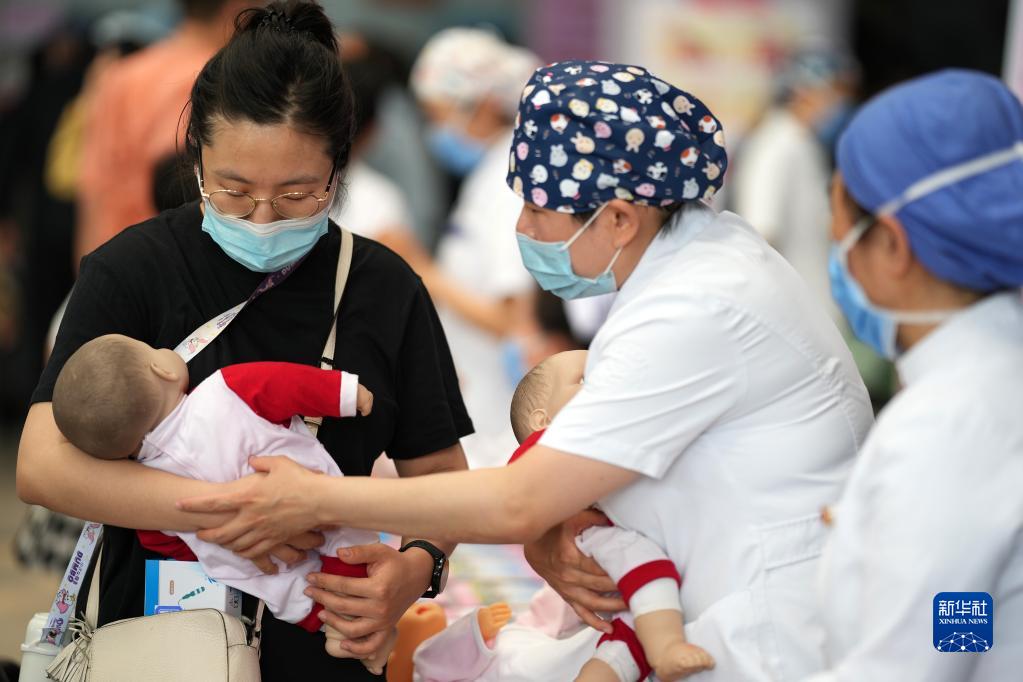 5月12日,護理專(zhuān)家在首都醫科大學(xué)附屬北京婦產(chǎn)醫院東院區的健康咨詢(xún)活動(dòng)上介紹母乳喂養相關(guān)知識。