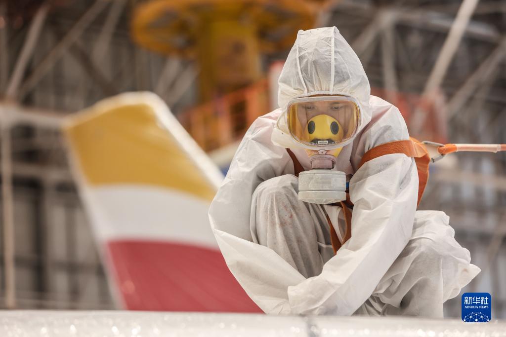 5月11日,在海南自貿港一站式飛機維修產(chǎn)業(yè)基地內,噴涂作業(yè)員對一架空客A350-900寬體客機進(jìn)行噴漆打磨工作。完成整機噴涂后,這架飛機將從??诿捞m國際機場(chǎng)飛往西班牙首都馬德里完成交付。據悉,這是海南自貿港一站式飛機維修產(chǎn)業(yè)基地投產(chǎn)以來(lái)承接的首單空客A350機型飛機整機噴涂業(yè)務(wù)。