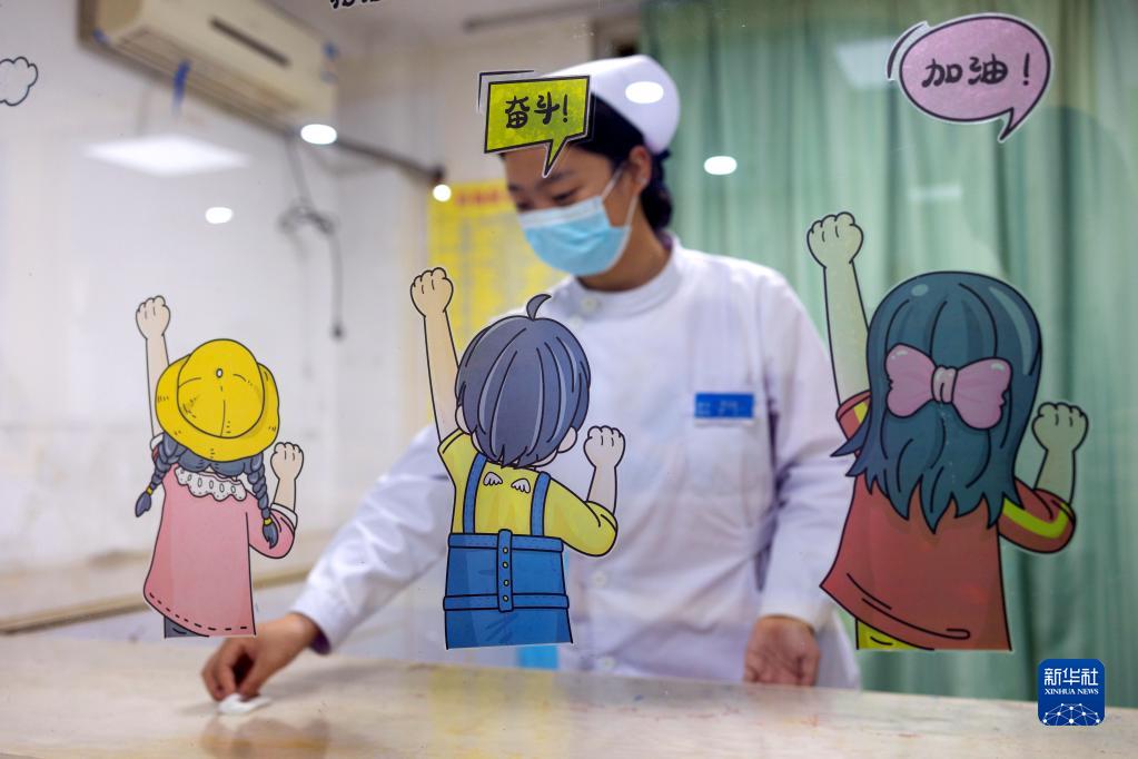 5月8日晚,渭南腦病康復醫院的一名護士在清潔配劑室臺面。