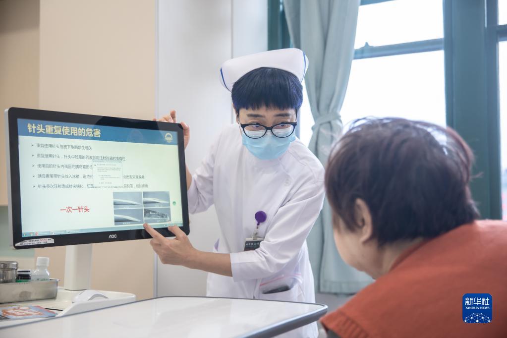 5月9日18時(shí)許,北京協(xié)和醫院內分泌科護士李蕊進(jìn)行護理宣教。