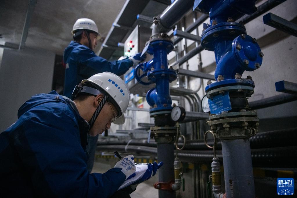 5月11日,中建十堰管廊公司運維人員在紫霄大道管廊內巡檢水泵抽水閥門(mén)。