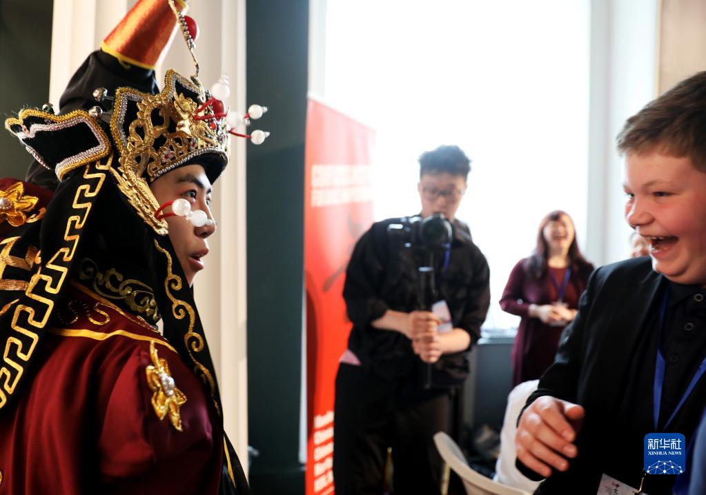 5月11日,在英國倫敦,演員在2023“國際中文日”英國主題活動(dòng)上與學(xué)生互動(dòng)。