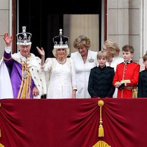 5月6日,在英國倫敦,英國國王查爾斯三世和王后卡米拉加冕后在白金漢宮陽(yáng)臺向民眾揮手致意。