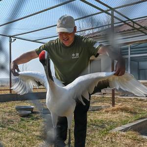 “鶴類(lèi)主要吃魚(yú),鴨、雁類(lèi)主要吃玉米和水草?!毙煳值聵?lè )胡說(shuō)。每天他都需要準備新鮮的小魚(yú)和水草,為管護站的候鳥(niǎo)喂食,并且定期清理候鳥(niǎo)籠中的雜物和水池。目前,管護站里有幾十只不同種類(lèi)的候鳥(niǎo)需要照顧。其中大部分候鳥(niǎo)是因為受傷等原因無(wú)法放飛野外,需要長(cháng)期待在管護站里。