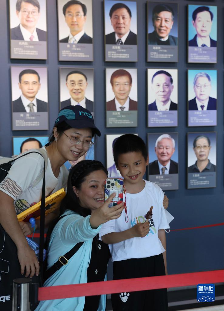 5月13日,參觀(guān)者在中科院物理研究所院士墻前留影。