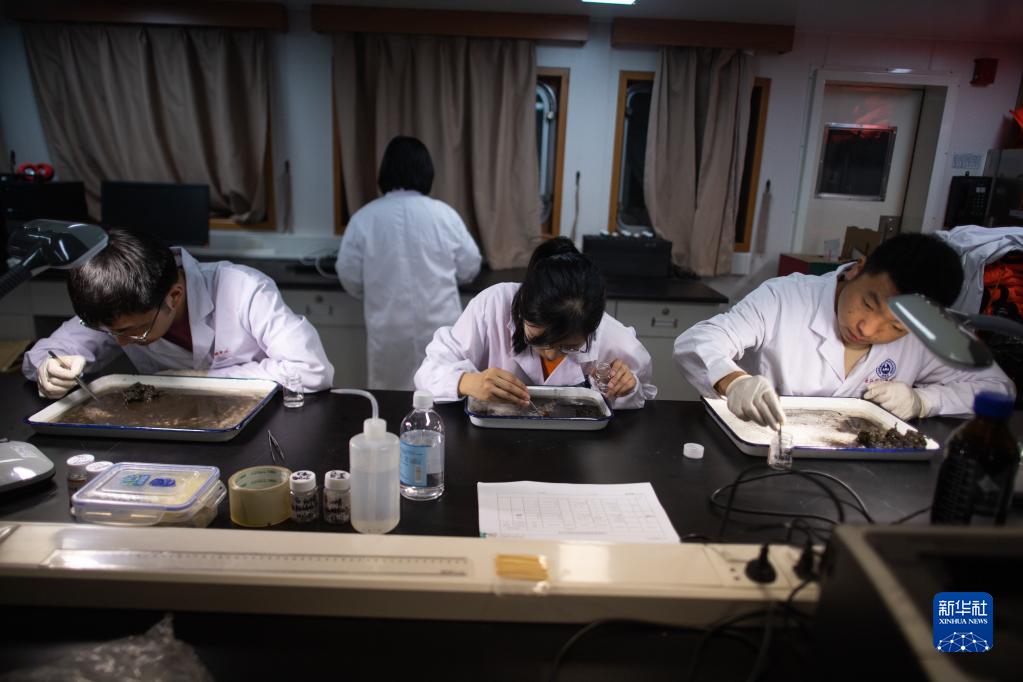 5月11日,監測人員在實(shí)驗室進(jìn)行底棲動(dòng)物樣品挑揀。