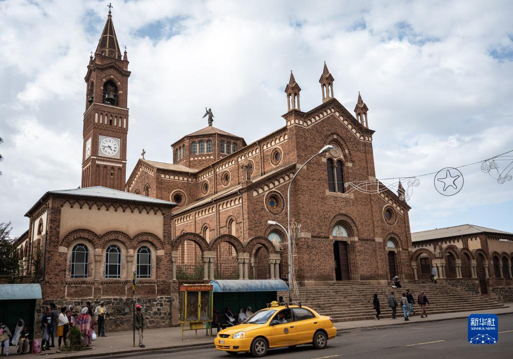 5月9日,一輛汽車(chē)從厄立特里亞首都阿斯馬拉的阿斯馬拉大教堂前駛過(guò)。
