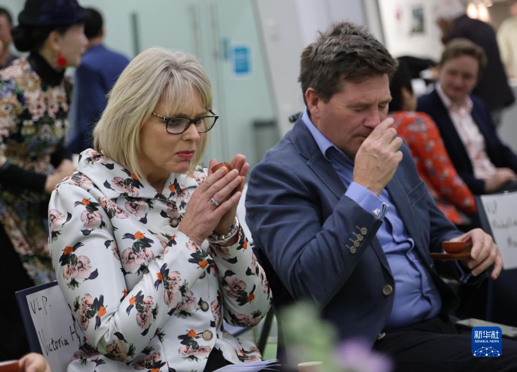 5月12日,在新西蘭克賴(lài)斯特徹奇舉行的“茶和天下·雅集”系列活動(dòng)走進(jìn)社區活動(dòng)上,克賴(lài)斯特徹奇市議員維多利亞(左)品嘗中國茶。新華社發(fā)(孟韜 攝)