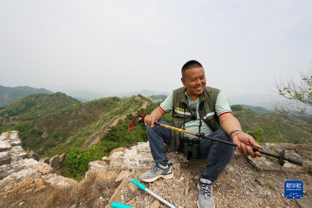 5月13日,趙春生在巡查長(cháng)城途中休息。