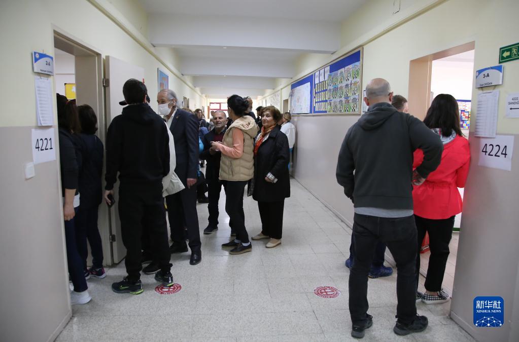 5月14日,在土耳其安卡拉,民眾在一處投票站等候參加投票。