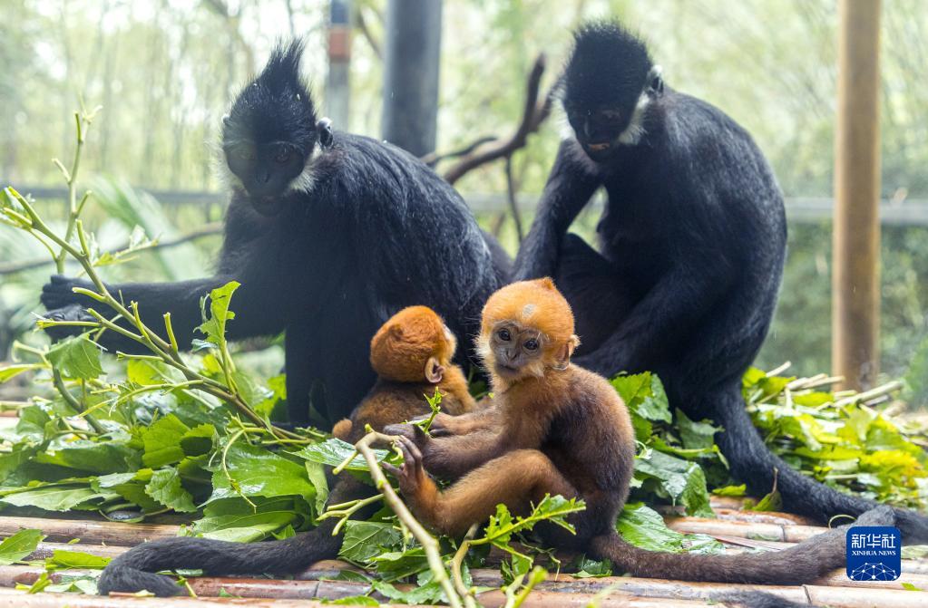 今年以來(lái),廣州長(cháng)隆野生動(dòng)物世界成功繁育兩只黑葉猴寶寶“想你”和“花園”。黑葉猴母猴“歡歡”“美美”分別于3月30日與5月5日產(chǎn)下雄性寶寶“想你”和“花園”。剛出生的黑葉猴寶寶全身呈金黃色,兩三個(gè)月后就會(huì )逐漸變成黑色。