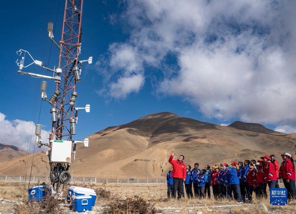 5月15日,珠峰站工作人員席振華給孩子們講解科學(xué)儀器的功能作用。