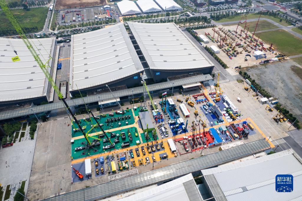 這是5月15日在長(cháng)沙國際會(huì )展中心拍攝的第三屆長(cháng)沙國際工程機械展覽會(huì )戶(hù)外展區(無(wú)人機照片)。