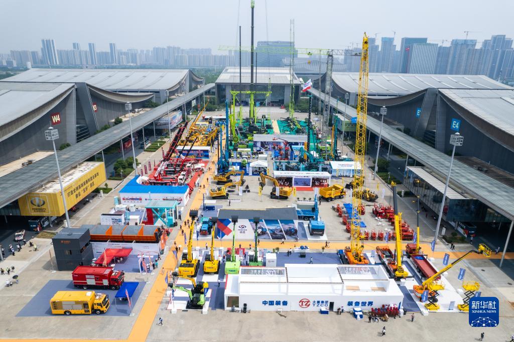 這是5月15日在長(cháng)沙國際會(huì )展中心拍攝的第三屆長(cháng)沙國際工程機械展覽會(huì )戶(hù)外展區(無(wú)人機照片)。
