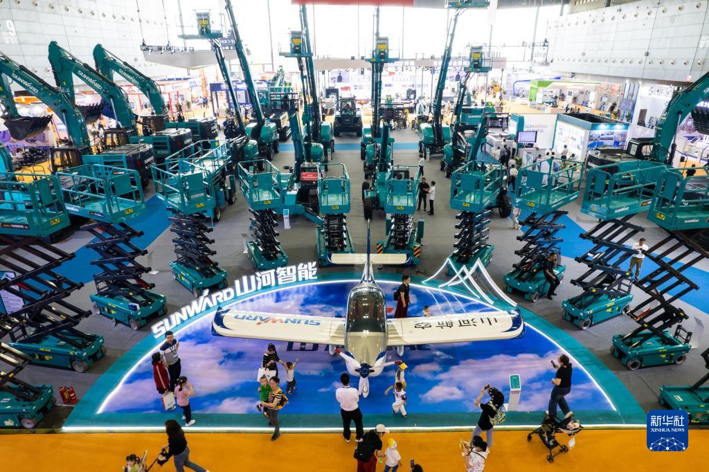 5月15日,在長(cháng)沙國際會(huì )展中心,觀(guān)眾在參觀(guān)展出的工程機械設備(無(wú)人機照片)。
